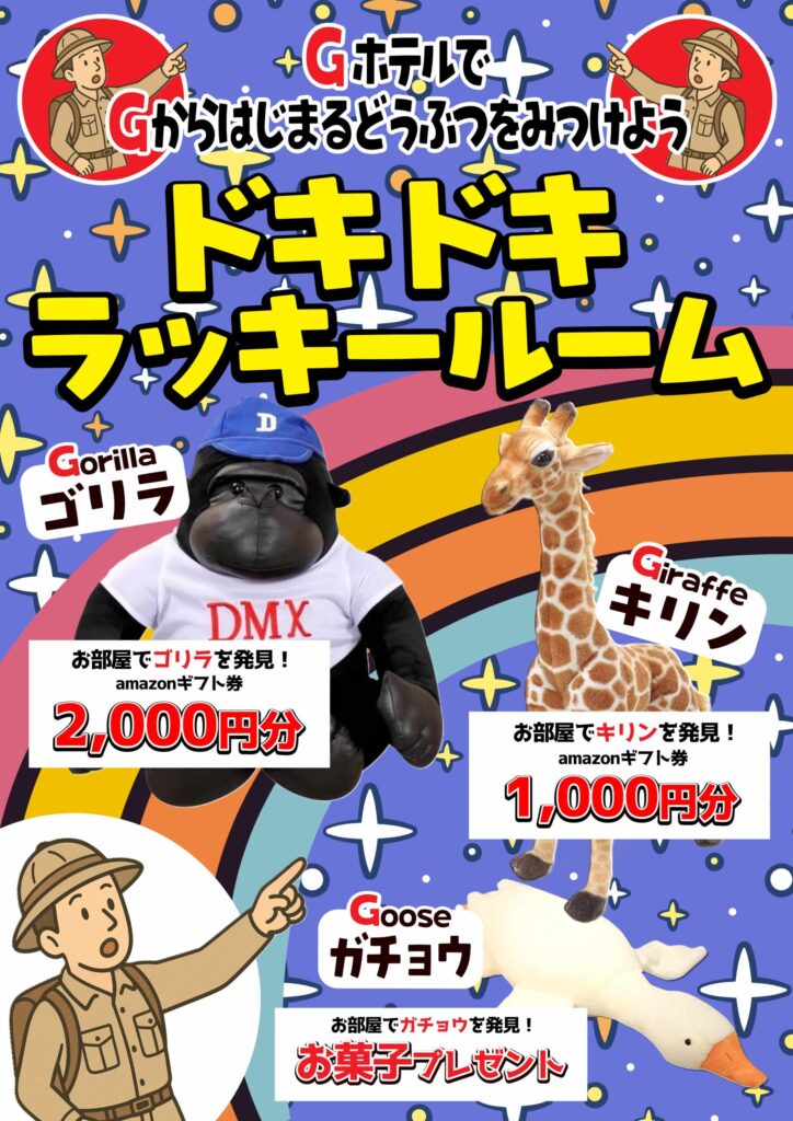 「G」ホテルのお部屋で「G」のつく動物を見つけたあなたはラッキー!